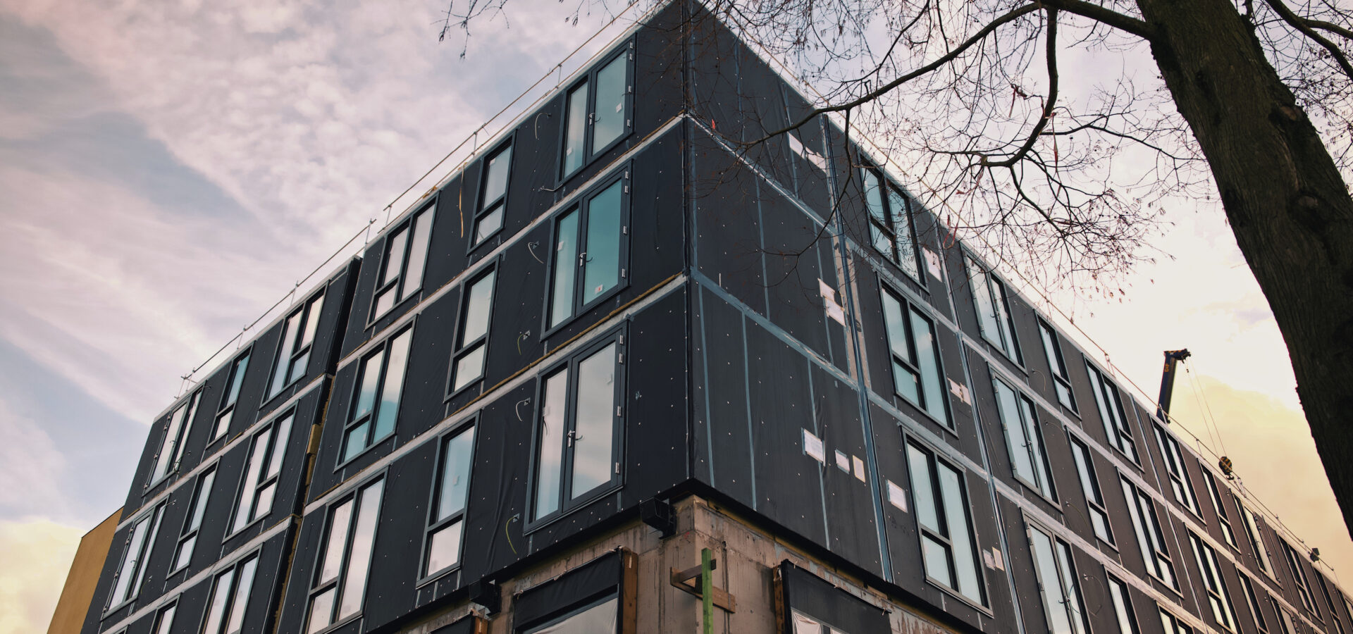 De bouw gaat nu de volgende fase in. Zo wordt onder andere de installatietechniek van de modules gekoppeld, de gevelbekleding toegevoegd en begint de afwerking van het kantoor van Elan Wonen.