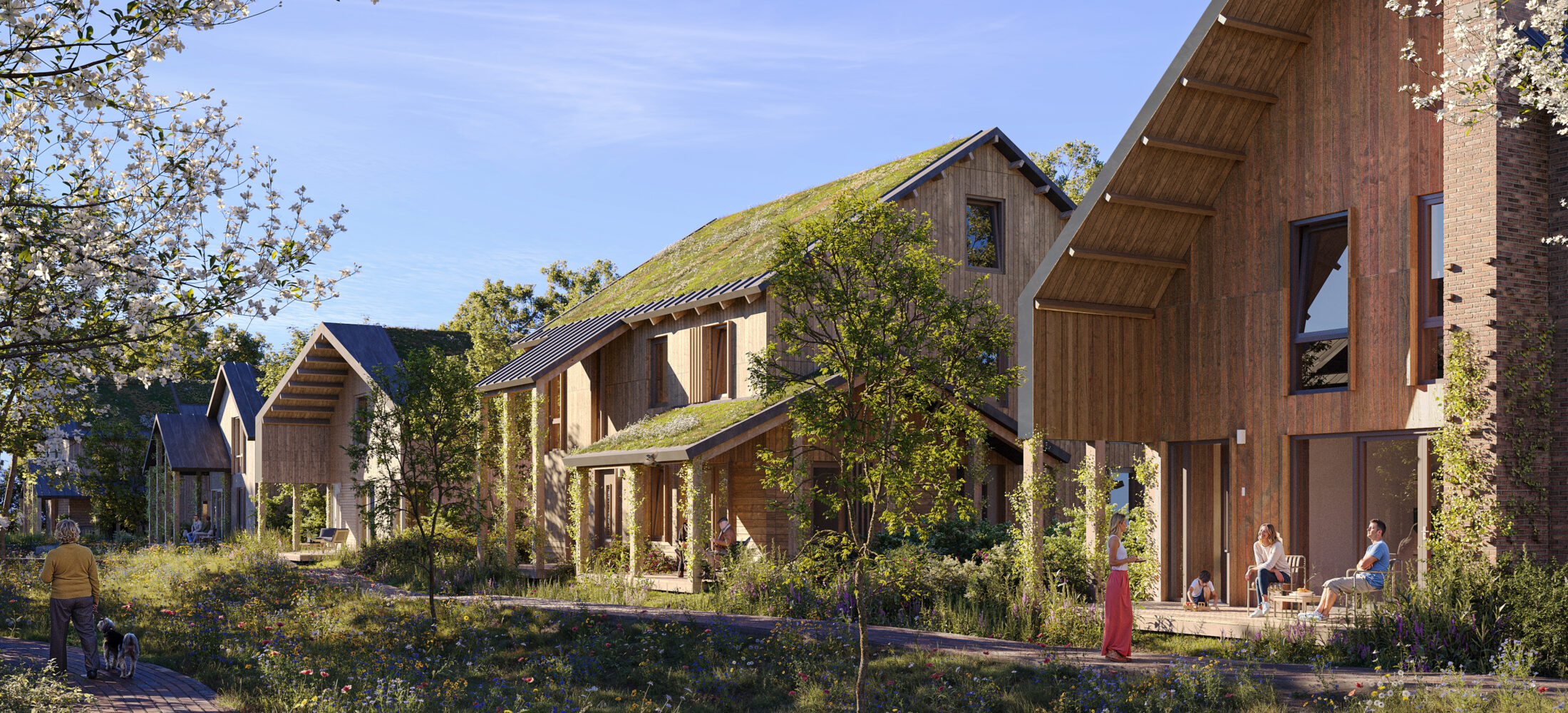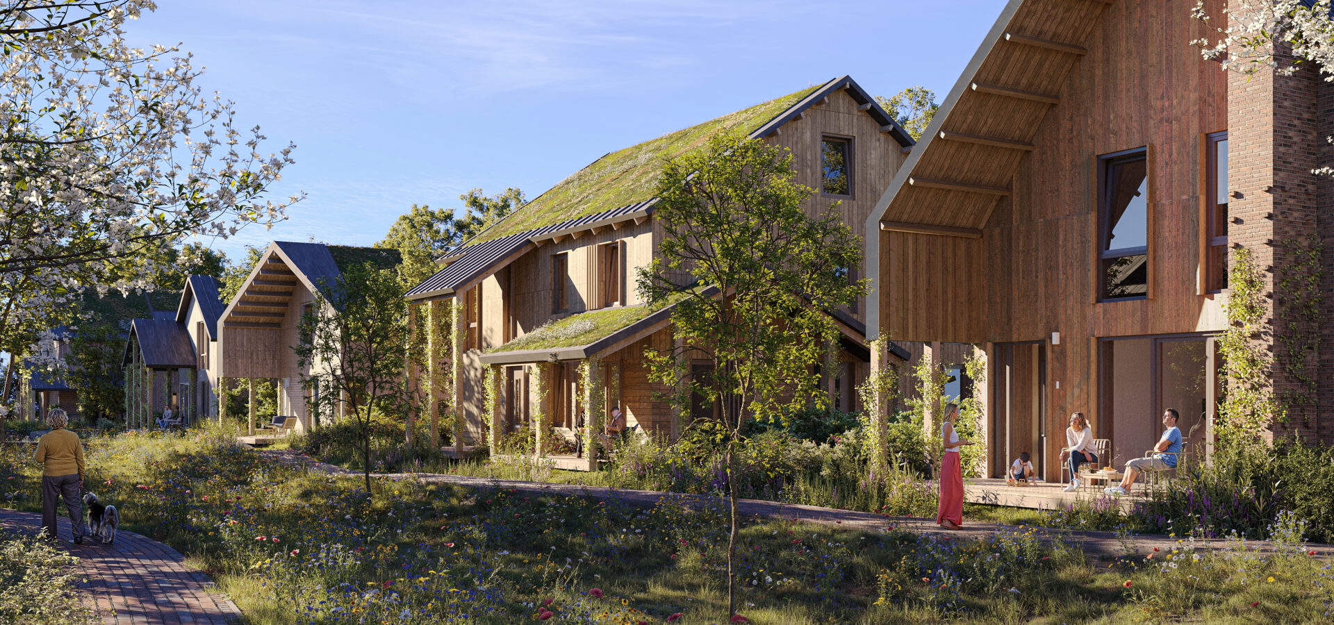 Ongeveer de helft van de woningen is opgebouwd uit hout en ontworpen als passief huis. Dat betekent comfortabel wonen met minimale impact dankzij een zeer goede gebouwschil, optimale zonoriëntatie (met zonwering) en zomernachtventilatie, waardoor een zeer compacte installatie mogelijk is met minimale energiekosten.