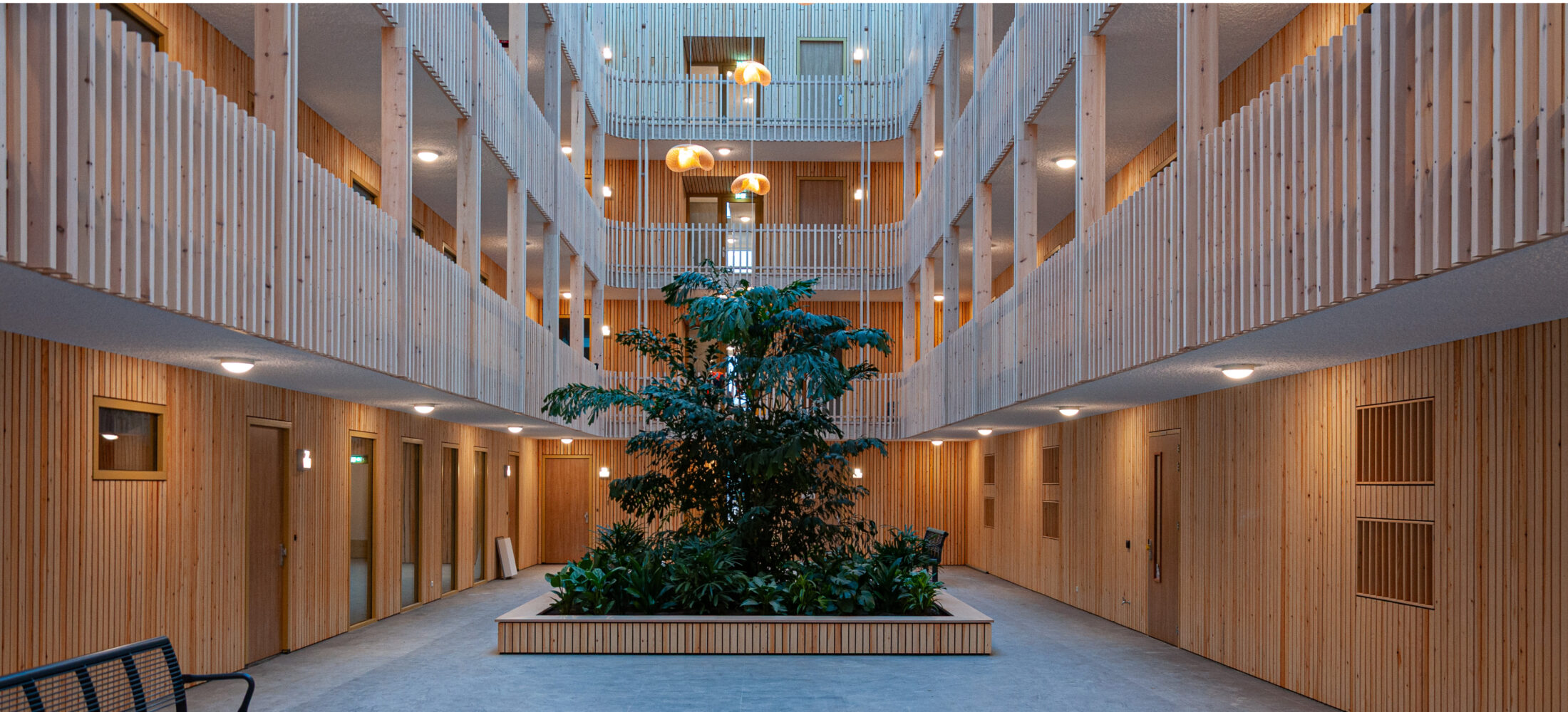 De opgave? Een complexe locatie tussen woonwijk en infrastructuur, in een groenstrook én een doelgroep waarvoor ontmoeting, veiligheid en zo lang mogelijk zelfstandig kunnen wonen centraal staan. Met parametrisch ontwerpend onderzoek vonden we de optimale blokopzet: woningen rondom een ruim en licht atrium.