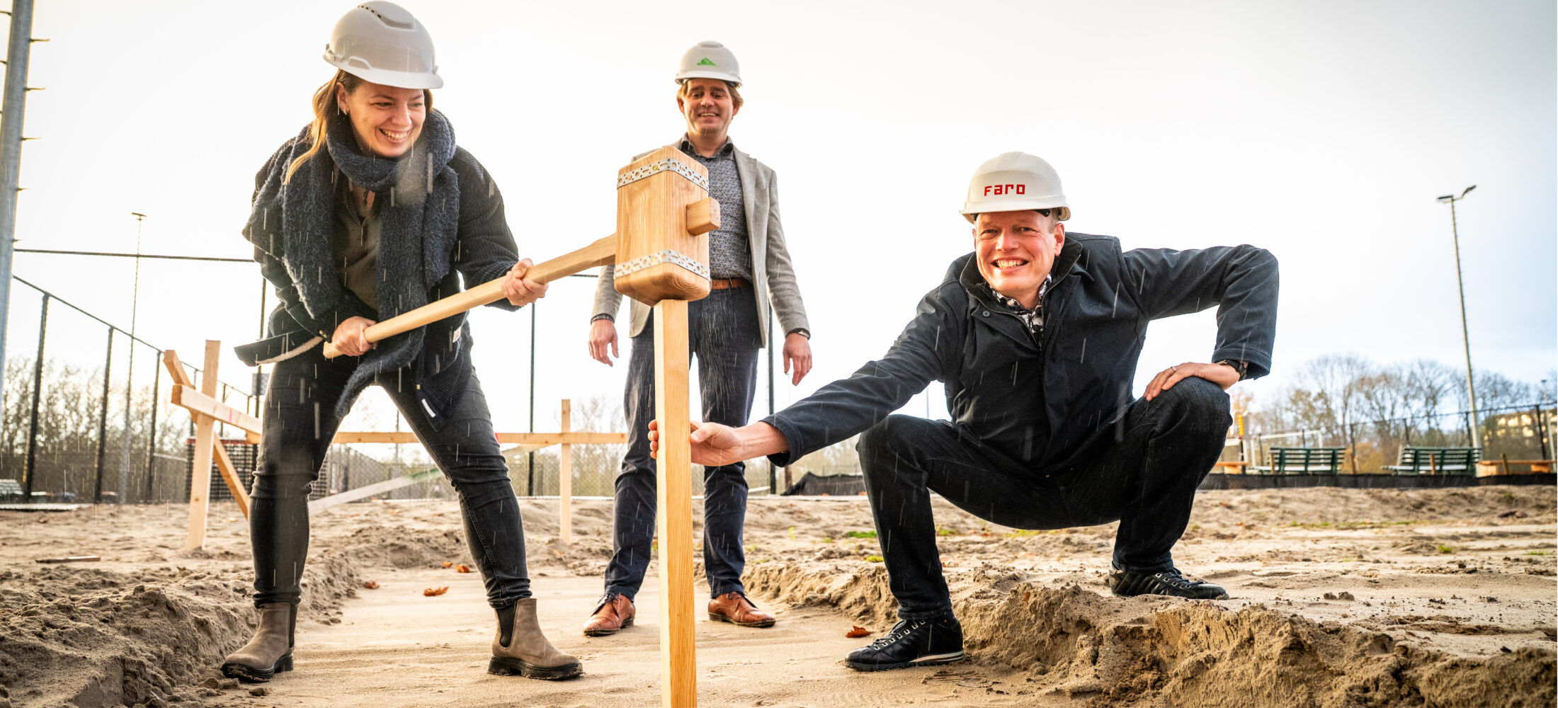 Op maandag 17 november werd de eerste paal geslagen voor de bouw van het nieuwe clubhuis van TPV Nieuwe Sloot. Bij het officiële moment waren onder anderen secretaris Claudia van Rijn, projectleider Marco de Jong, aannemer Peter Bruines en Coen Kampstra aanwezig, die ook de aannemingsovereenkomst ondertekenden. Een prachtig mijlpaal voor de club, die afgelopen juni verhuisde van de President Kennedylaan naar de Sportlaan in Alphen aan den Rijn.