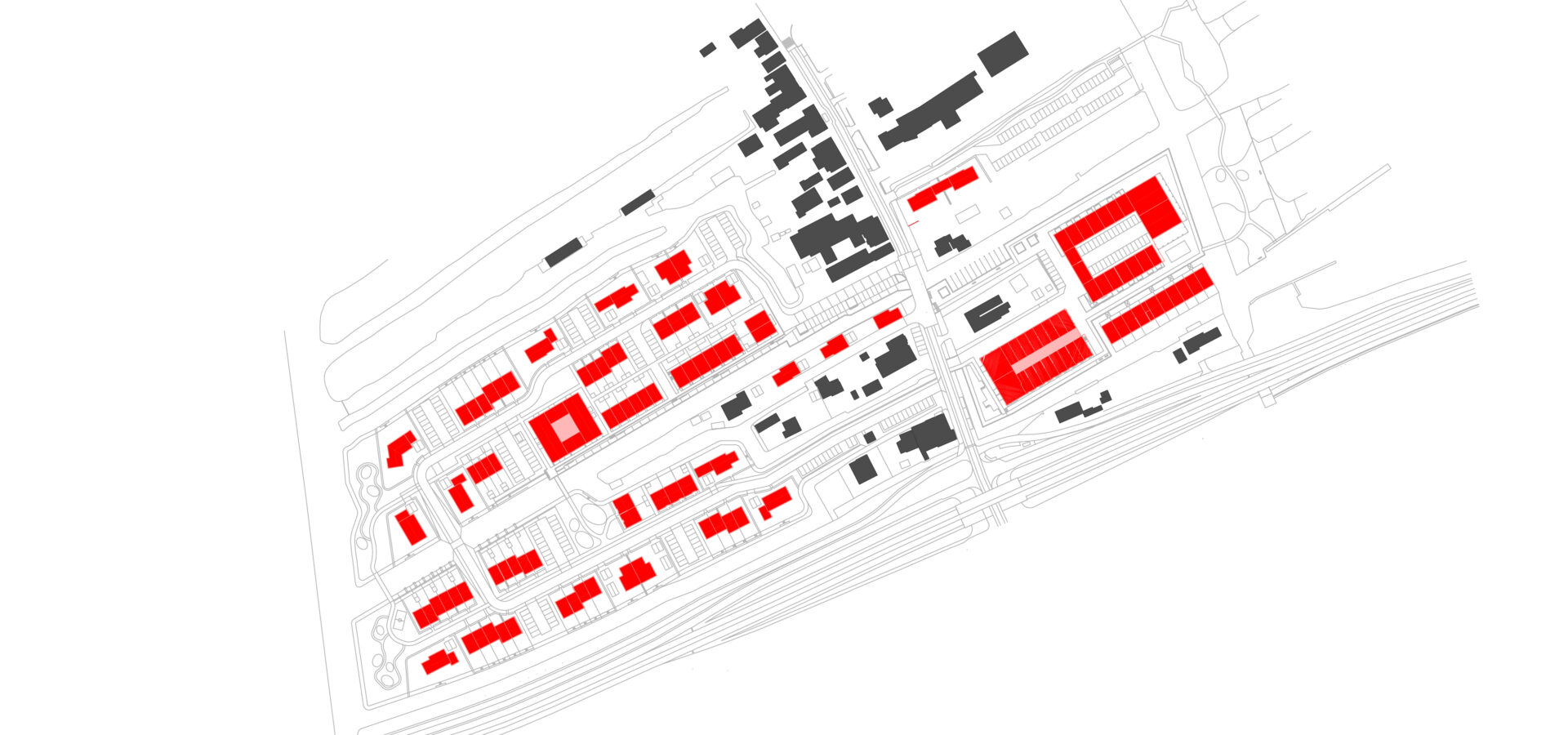 De verlaten fabriek en het bijbehorende terrein – met een gigantische betonplaat – vormde het startpunt van ons ontwerp. Verweerde loodsen, betonnen kozijnen, een eenzame lantarenpaal en roestige letters op het dak: het terrein ademt een stoere industriële geschiedenis. Aan de andere kant liggen de stille lijnen van het waterrijke landschap, met wilgen en riet langs de oevers. Die combinatie bood een duidelijke ontwerpopgave: hoe ontstaat hier een wijk waarin zowel natuur als industrie een rol blijven spelen? Hoe maken we hier woningen die recht doen aan de locatie?